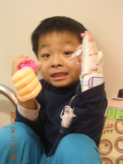 只好趕緊從辦公桌上拿了玩具小拳頭帶去給小恆當小禮物