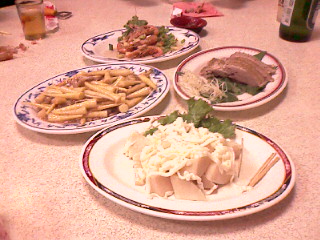 烤豬肉 / 炒牛肉 / 鹹酥蝦 / 魚翅頭 / 蒜泥蚵 / 炒劍筍